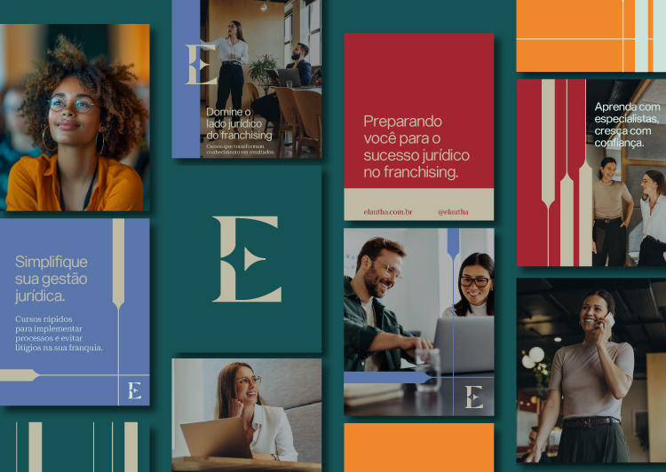 a ELAUTHA assume uma posição firme no universo da educação jurídica, com uma linguagem visual que equilibra profissionalismo e objetividade.