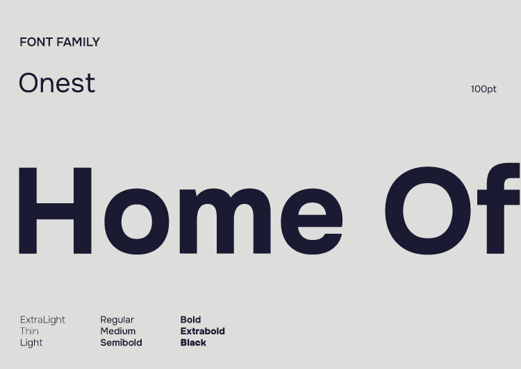 a tipografia escolhida foi a onest, uma fonte versátil que permite diferentes aplicações sem perder clareza.