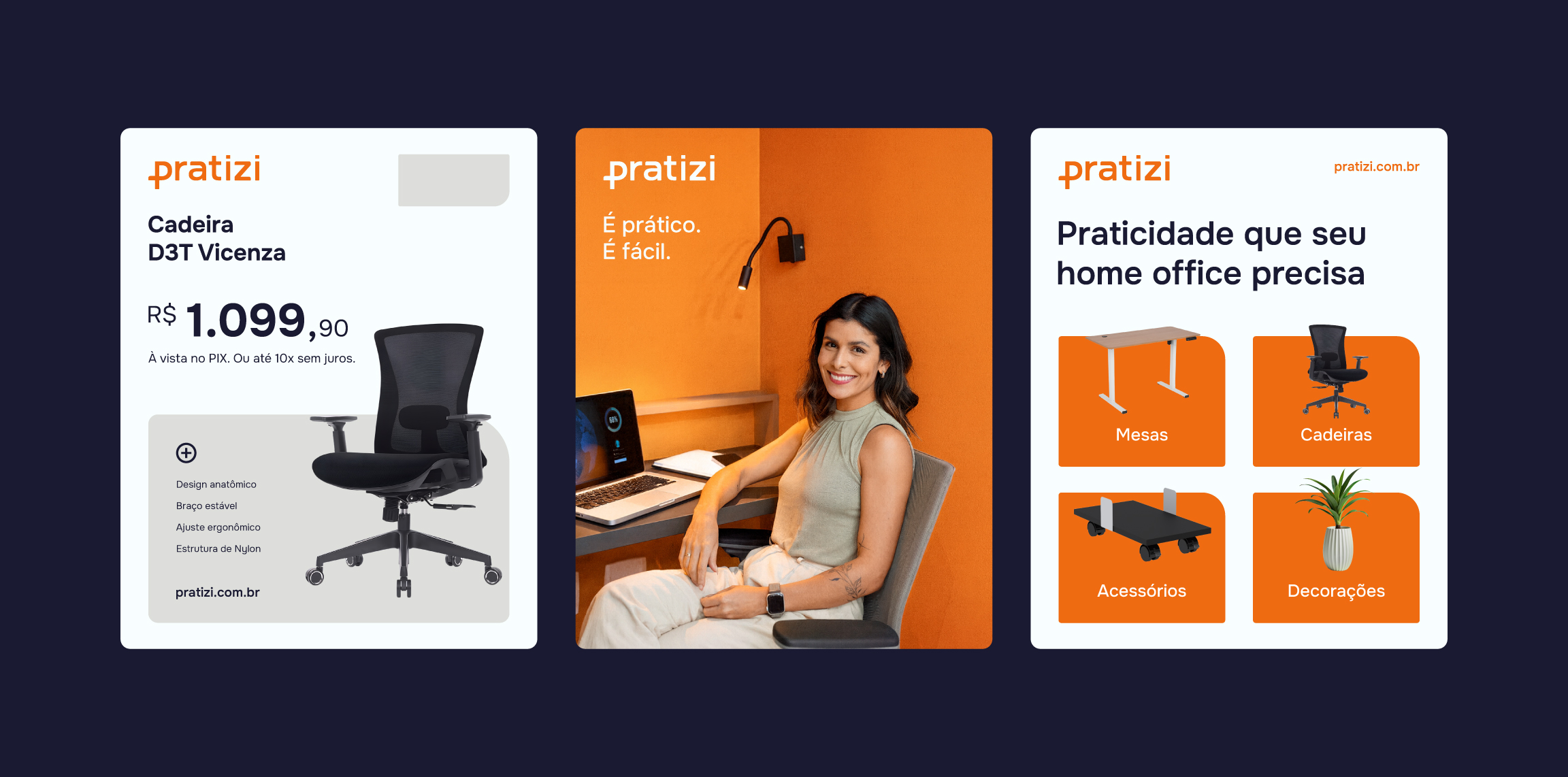 a Pratizi é um e-commerce de móveis para ambientes profissionais, como empresas, home offices e espaços de estudo.