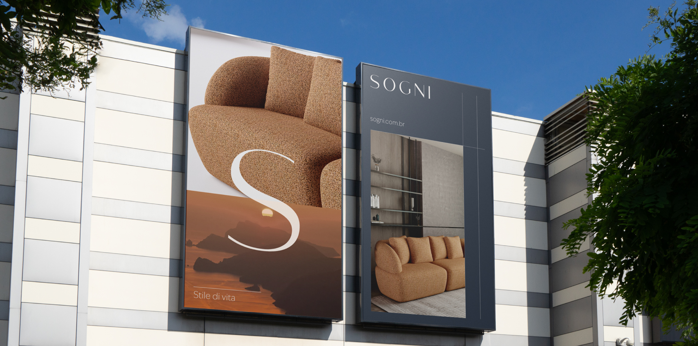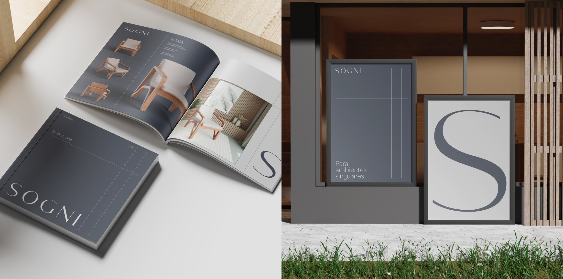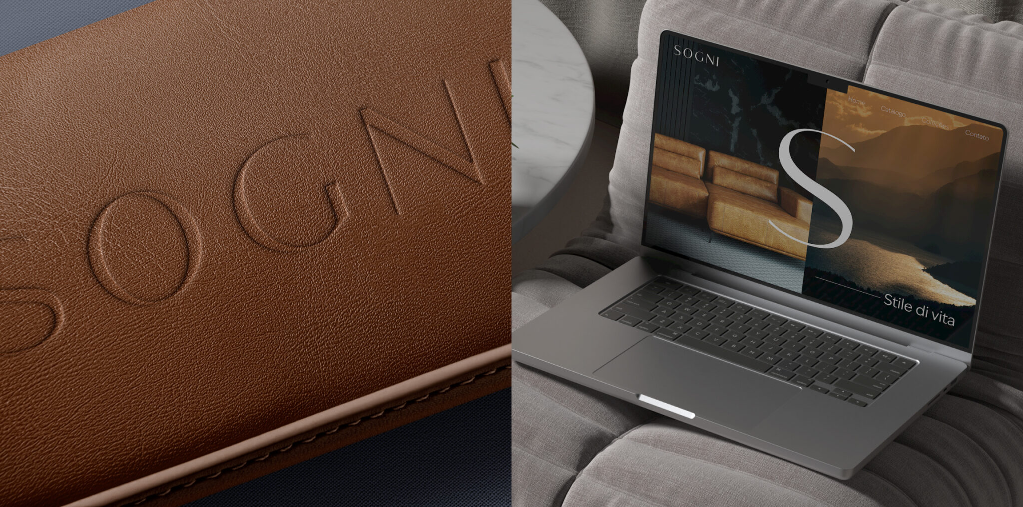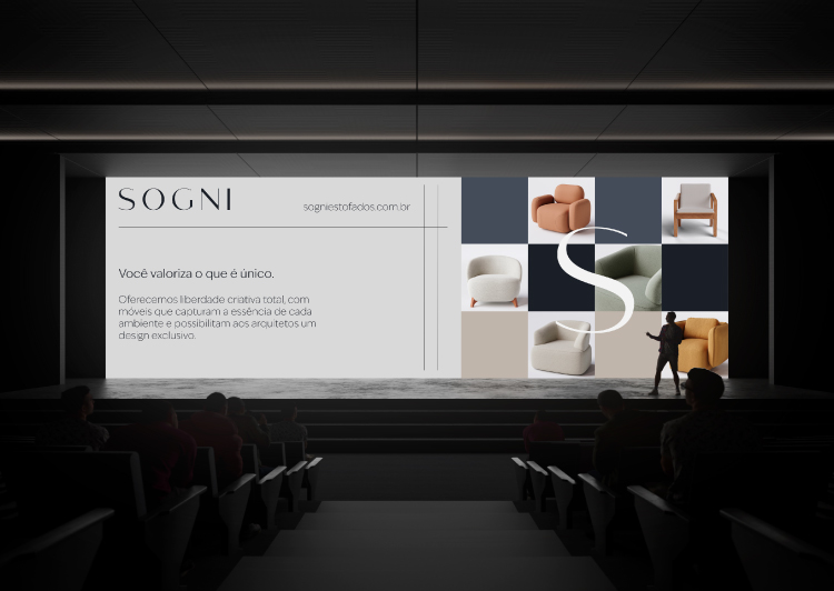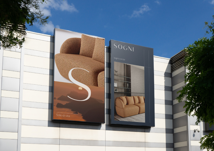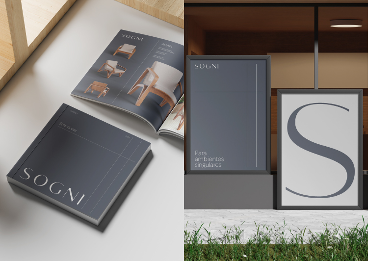 a identidade visual da SOGNI foi construída a partir de uma forte inspiração no design e no lifestyle italiano, traduzindo um universo de sofisticação que se conecta ao comportamento do seu público.