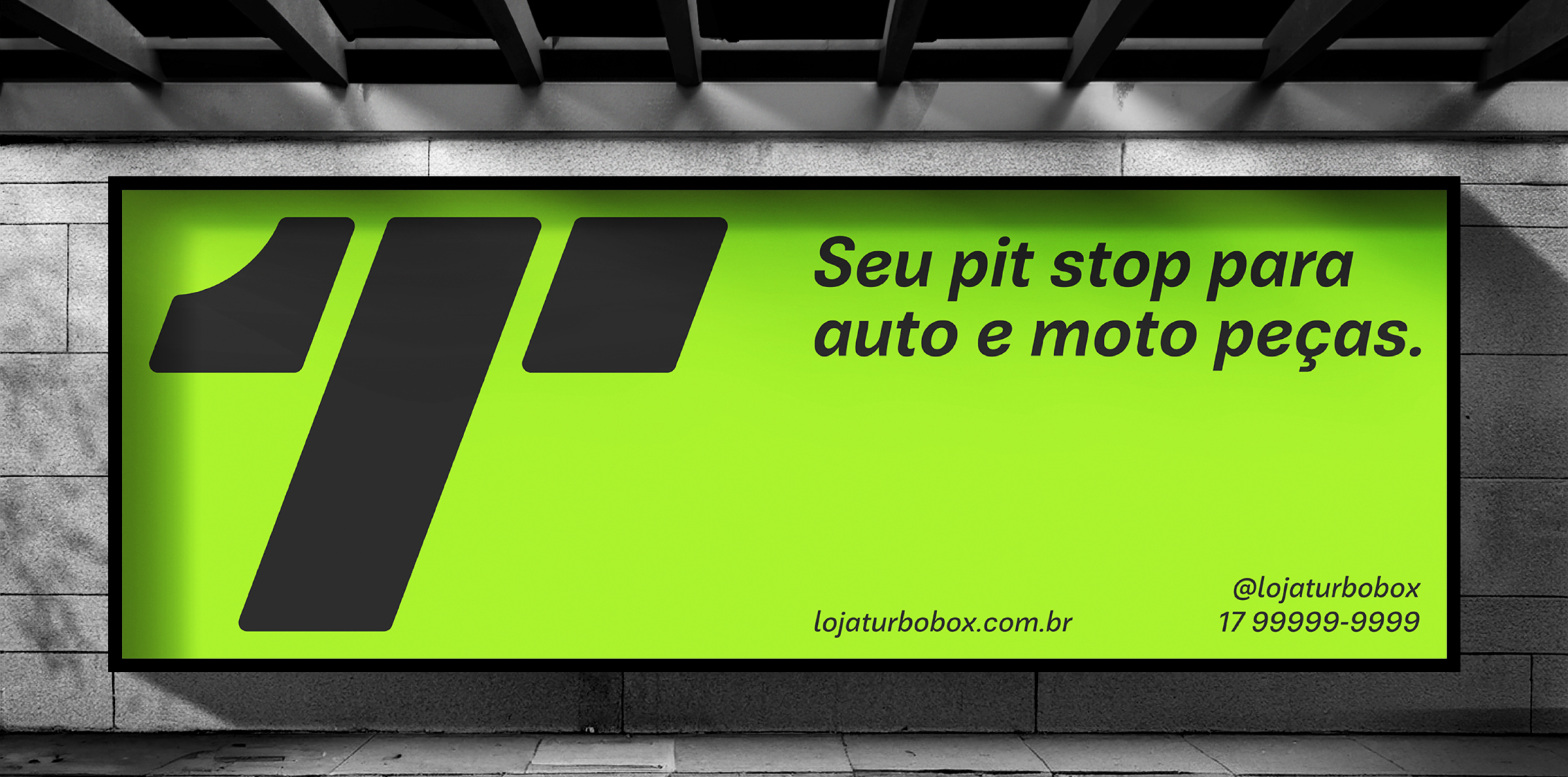 o logotipo da TurboBox foi inspirado na liderança e na velocidade que definem o setor automotivo. o símbolo apresenta a letra “T”, representada pelo número ordinal “1”, reforçando a posição de destaque da marca. a angulação de 77° transmite dinamismo e modernidade, reforçando a ideia de agilidade.